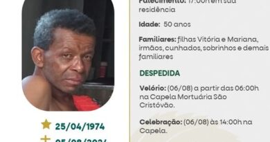 A Bianchi Funerárias, juntamente com a família Comparin, comunica com pesar, o falecimento de Terezinha Lourdes Comparin, ocorrido às 11h30 do dia 07/11/2025 no HSA de Tapejara com 80 anos de idade. Não haverá velório. Celebração às 09 horas do dia 08/11/2025, após seu corpo será sepultado no Cemitério da Comunidade de Linha Três – Tapejara.