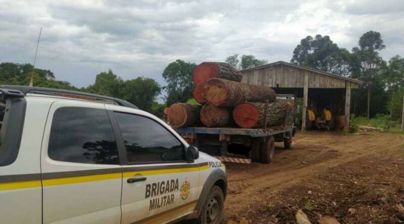 Os policiais militares, do 3° Batalhão Ambiental da Brigada Militar de São José do Ouro, flagraram, nesta quinta-feira, 02, transporte ilegal de madeira, Araucária e Cedro, em Ibiaçá.