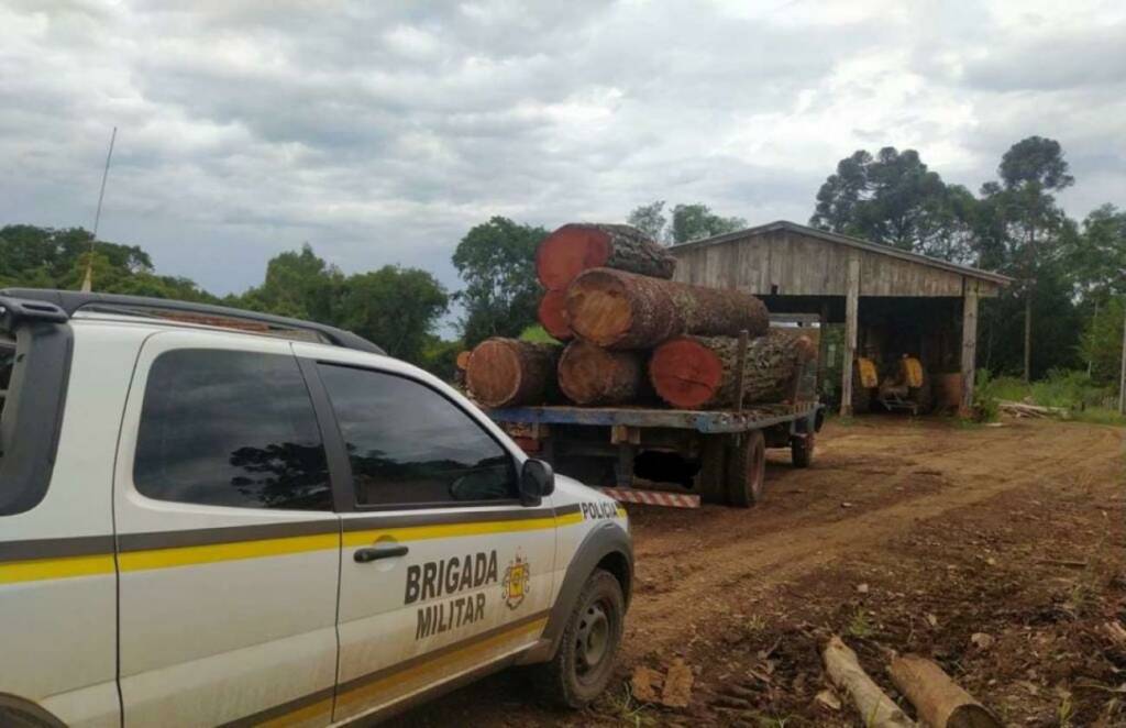Na abordagem, o proprietário da madeireira confirmou que as toras foram retiradas do interior de Sananduva e que não tinha Documento de Origem Florestal (DOF) para o transporte.