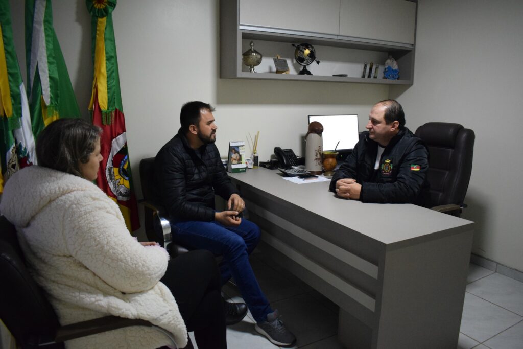 Nesta manhã de quarta-feira (22/06) o Prefeito Municipal de Santa Cecília do Sul, João Sirineu Pelissaro, recebeu em seu gabinete o Prefeito Municipal de Capão Bonito do Sul Felippe Júnior Rieth e a Primeira Dama Thaís Roman Rieth.