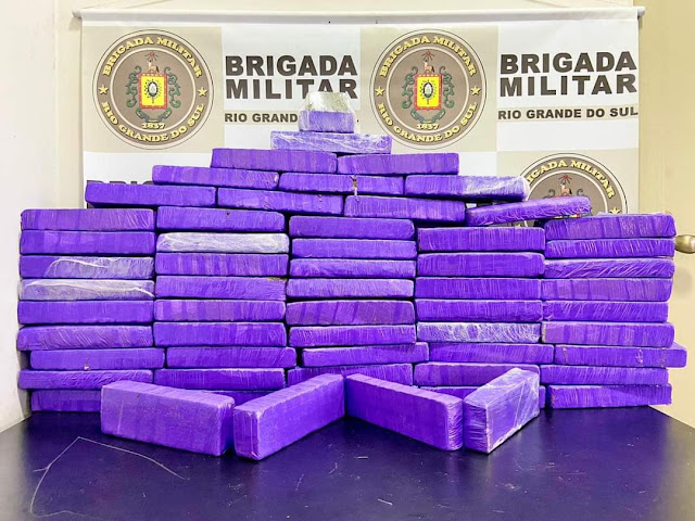 Foi realizada a abordagem na mulher na chegada do ônibus. Ela estava de posse das duas malas, sendo localizados no interior delas 58 tabletes e meio de maconha.