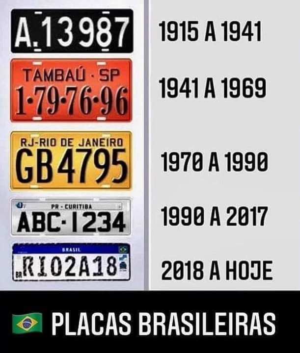 Confira na imagem a evolução das placas de veículos utilizadas no Brasil desde 1915 até hoje. Qual você prefere?