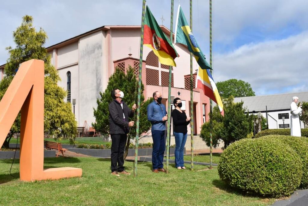 Na última segunda-feira (18) na Praça Central, houve a abertura oficial da Semana do Município 2021. Estiveram presentes o prefeito municipal Anildo Costella, o vice-prefeito Alencar Biazotto, secretários, vereadores, representes do comércio local, alunos, professores e direções das Escolas Marquês de Maricá, Cecília Meireles e EMEI Margarida Fiori Tognon, além da participação da comunidade.