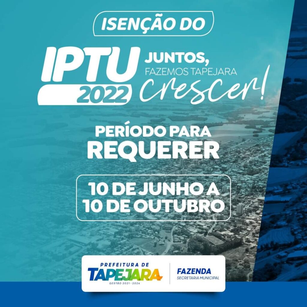 No dia 10 de junho, foi aberto o período de inscrições para isenção do Imposto Predial e Territorial Urbano (IPTU) em Tapejara.