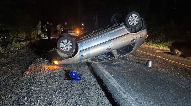 O condutor de um Fiat/Palio, que seguia no sentido Erechim, por motivos desconhecidos perdeu o controle da direção e capotou o veículo, parando sobre a pista.