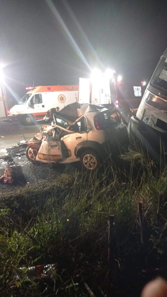 Segundo informações preliminares, um caminhão e um veículo Fiat Uno se envolveram neste acidente que resultou em um óbito no local.
