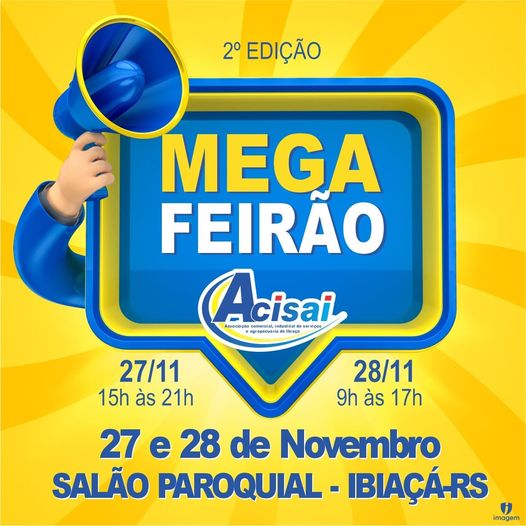 Acontecerá nos dias 27 e 28 de novembro a segunda edição do mega feirão Acisai em Ibiaçá. Em só lugar você encontrará indústria, tecnologia, confecções e calçados. Os clientes concorrerão a 15 mil em vale compras.