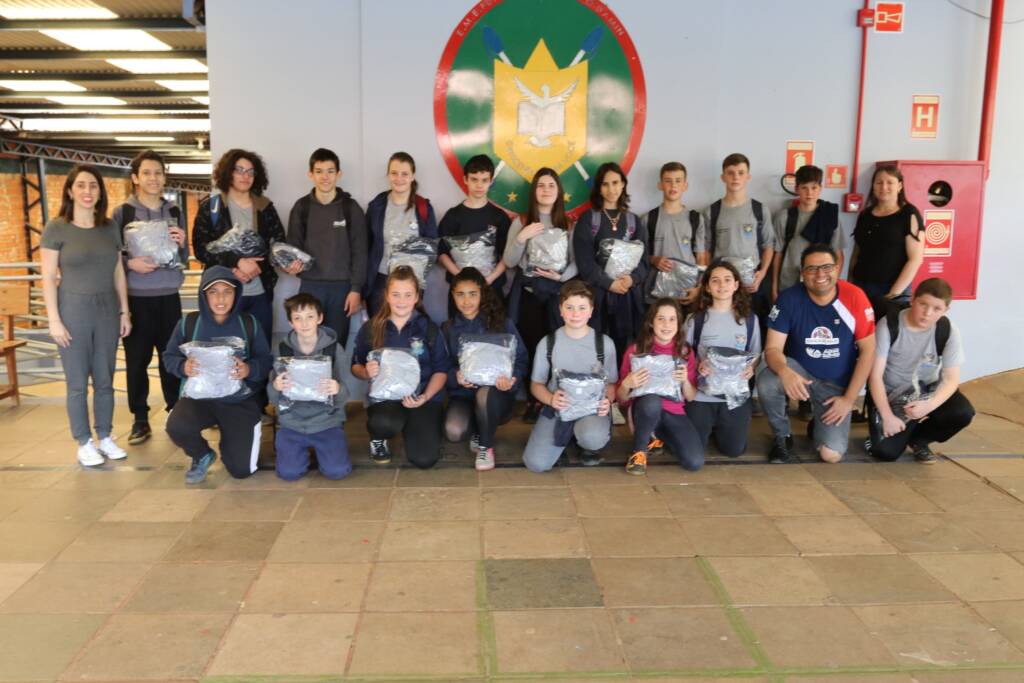 O kit é composto por uma camiseta de manga curta, uma camiseta de manga longa e um moletom, mais de 1.500 peças foram entregues para os alunos.