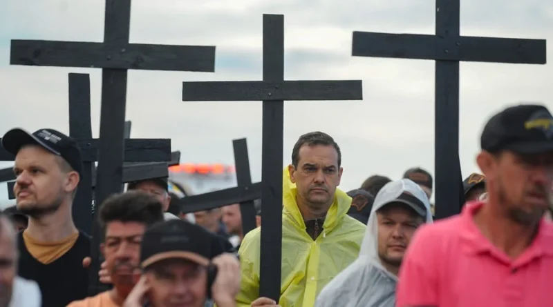 Antes mesmo da abertura oficial da 26a. Expodireto Cotrijal, feira relizada nesta semana em Não-Me-Toque, ocorreu um amplo protesto de agricultores promovido pela APER, a Associação de Produtores e Empresários Rurais, uma associação sem ligação poçítica e que reúne produtores rurais e empresários do agronegócio para defender as causas do campo e fortalecer o produtor rural. O protesto foi intitulado “Luto pleo agro. Se não lutar ele morre”.