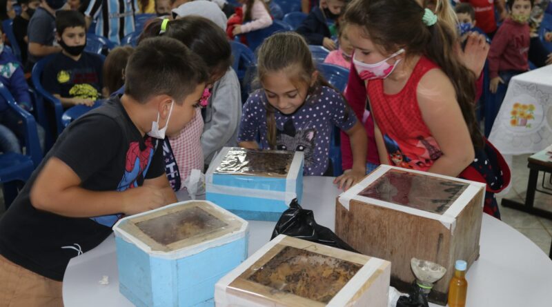 E nem sobre zangão, embora esse texto seja sobre abelha sem ferrão. Ontem, 30 de março, em uma parceria que deu certo e ainda renderá muitos frutos, ou muito mel, a Secretaria Municipal de Educação e Cultura e a Secretaria Municipal de Agricultura e Meio Ambiente, juntamente com o Centro de Tecnologia de Alternativas Populares – CETAP realizaram uma troca de conhecimento com os alunos do 1º Ano ao 9º Ano da Escola Municipal de Ensino Fundamental Padre Raimundo Damin. Na ocasião, os alunos participaram de uma oficina de abelhas nativas sem ferrão, mais conhecidas como ABELHAS-MIRINS. Conversaram com os alunos o gestor ambiental e assessor técnico do CETAP, Rudian Martini e a agrônoma e assessora técnica do CETAP, Diulie Almansa da Costa, na oportunidade, trocaram valiosas informações sobre as abelhas, onde falaram sobre o comportamento e a formas em que cada espécie de abelha trabalha na construção de favos e tipos de mel produzidos em cada colmeia.O secretário de agricultura e meio ambiente, Jairo Rodigheri, disse que esse projeto busca levar conhecimento sobre as abelhas-mirins aos alunos da rede municipal e que através deles as famílias possam ser impactadas e que possam aprender mais sobre o cultivo dessas abelhas. “Agradecemos o empenho da equipe do CETAP em trazer esse assunto aos alunos do nosso município e também agradeço a Secretaria de Educação por essa parceria que, com certeza, fará diferença na vida das pessoas”. A secretária de educação e cultura, Andriessa de Moraes de Souza comentou que essa parceria com a Secretaria de Agricultura só tem a agregar na vida dos estudantes da rede pública. “Estamos alinhados no mesmo proposito que é levar conhecimento aos nossos alunos, agradeço a toda equipe da Secretaria de Agricultura e do CETAP por essa linda parceria”. No dia 07 de abril na Praça Central Avelino Júlio Pimentel, o CETAP juntamente com a Cooperativa de Apicultores de Água Santa, EMATER, Sindicato dos Trabalhadores e Secretaria de Agricultura e Meio Ambiente, estará realizando um evento de inauguração de um Meliponário Comunitário Urbano de Abelhas Nativas sem Ferrão. Em breve traremos mais informações sobre o assunto.