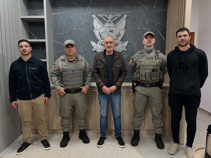 Na tarde de 24 de julho, os representantes da Brigada Militar de Água Santa, o Tenente Paulo Ricardo de Mello e o Soldado Theilor Marcon, estiveram no gabinete municipal atendendo o chamado dos representantes do Executivo e do Legislativo. Estiveram presentes no encontro o vice-prefeito, José Lorençon, o presidente da Câmara de Vereadores, Alexandre Piton, e o coordenador de gabinete, Alexandro Rodigheri.