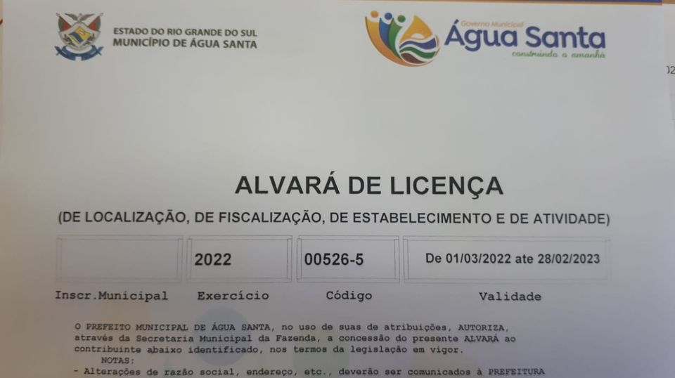 A Secretaria Municipal da Fazenda de Água Santa informa que o pagamento da taxa do alvará exercício 2022 deve ser feito até o próximo dia 25 de fevereiro. Após esta data serão cobrados juros e multa. O boleto para pagamento da taxa do alvará encontra-se disponível na tesouraria para retirada e pagamento. Os horários de funcionamento da Tesouraria são de manhã das 08h30min às 11h30min, ou de tarde das 13h30min às 17h30mim. Mais informações pelo telefone: (54) 3348-1080.