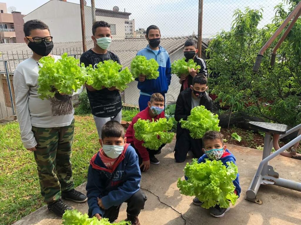 Dando continuidade ao projeto da horta, que vem sendo realizado dentro do tema ” É tempo de transformar conhecimento em ação”, nossos alunos puderam colher e desfrutar das verduras de nossa horta. Foram utilizadas as alfaces no preparo do lanche e também doadas aos alunos que integram o projeto.