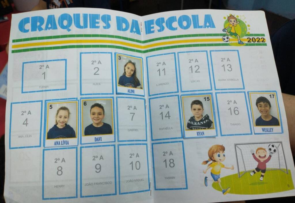 A turma do 2° Ano A, da EMEF Leonel de Moura Brizola, confeccionou, com auxílio da professora titular, do professor de informática e da monitora, um álbum com informações da Copa 2022, onde contém figuras com a imagem dos jogadores da seleção brasileira, do mascote e os craques da escola.