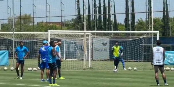 Neste domingo, o técnico Gustavo Quinteros focou na construção ofensiva. Os jogadores fazendo atividade em um quadrante delimitado, com quatro mini-goleiras em cada ponta. O objetivo de uma das equipes era a troca de passes, enquanto a outra buscava fazer o desarme e marcar o gol.