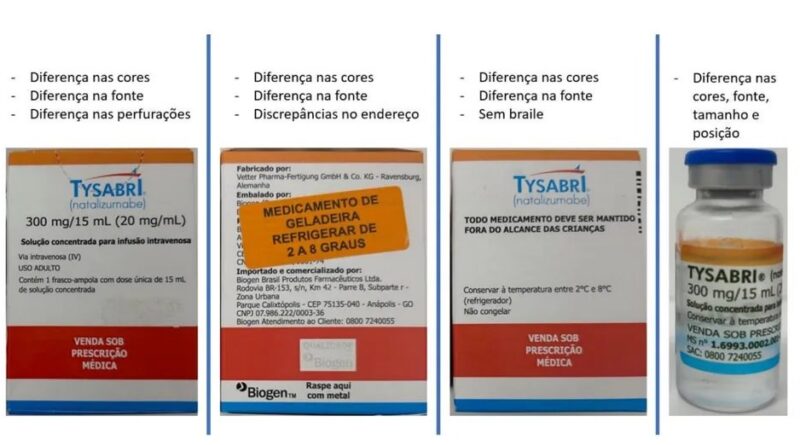 A Biogen Brasil Produtos Farmacêuticos comunicou à Anvisa sobre o lote FF00336, produzido apenas para fins institucionais e não comerciais. Segundo a empresa, o lote possui características divergentes das presentes no medicamento original, como: erros de ortografia do endereço da empresa responsável pela importação e distribuição do produto no País; diferença na cor da faixa laranja e azul da embalagem; formatação das letras; e ausência da inscrição em braille na embalagem.