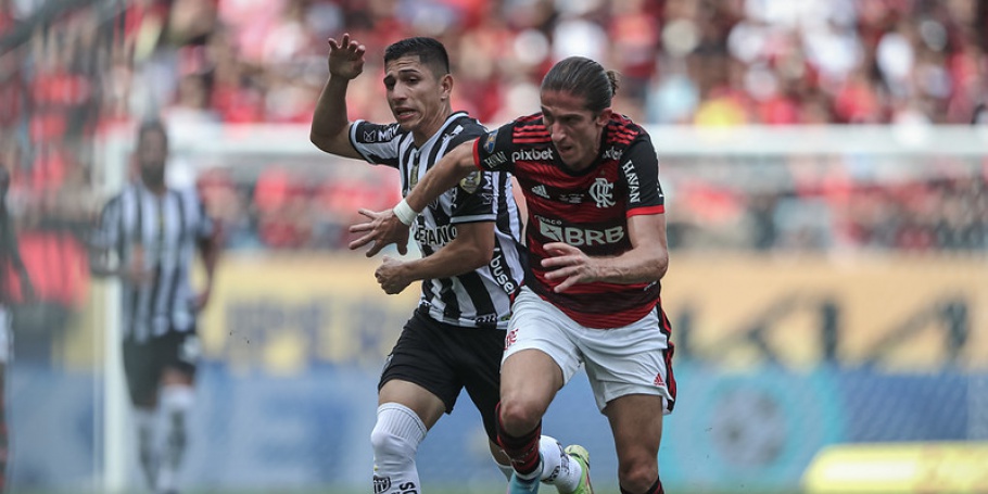 O Flamengo criou mais uma chance aos 27 minutos. Gabriel recebeu passe de João Gomes e chutou pela linha de fundo. O Galo estava ligado no jogo e, aos 36, Keno assustou com chute da entrada da área por cima do gol. Cinco minutos depois, aos 41, o Atlético abriu o placar. Guilherme Arana chutou e Hugo Souza deu rebote. Nacho Fernández, dentro da área, balançou as redes.