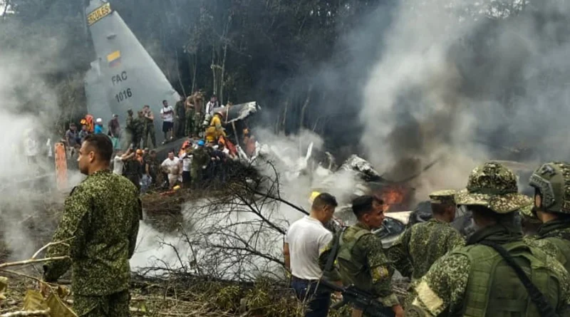 A aeronave, um C-13 Hércules, caiu pouco depois de decolar de Puerto Leguízamo, perto da fronteira com o Equador, por causas que ainda são desconhecidas. As equipes de resgate estão mobilizadas na área.