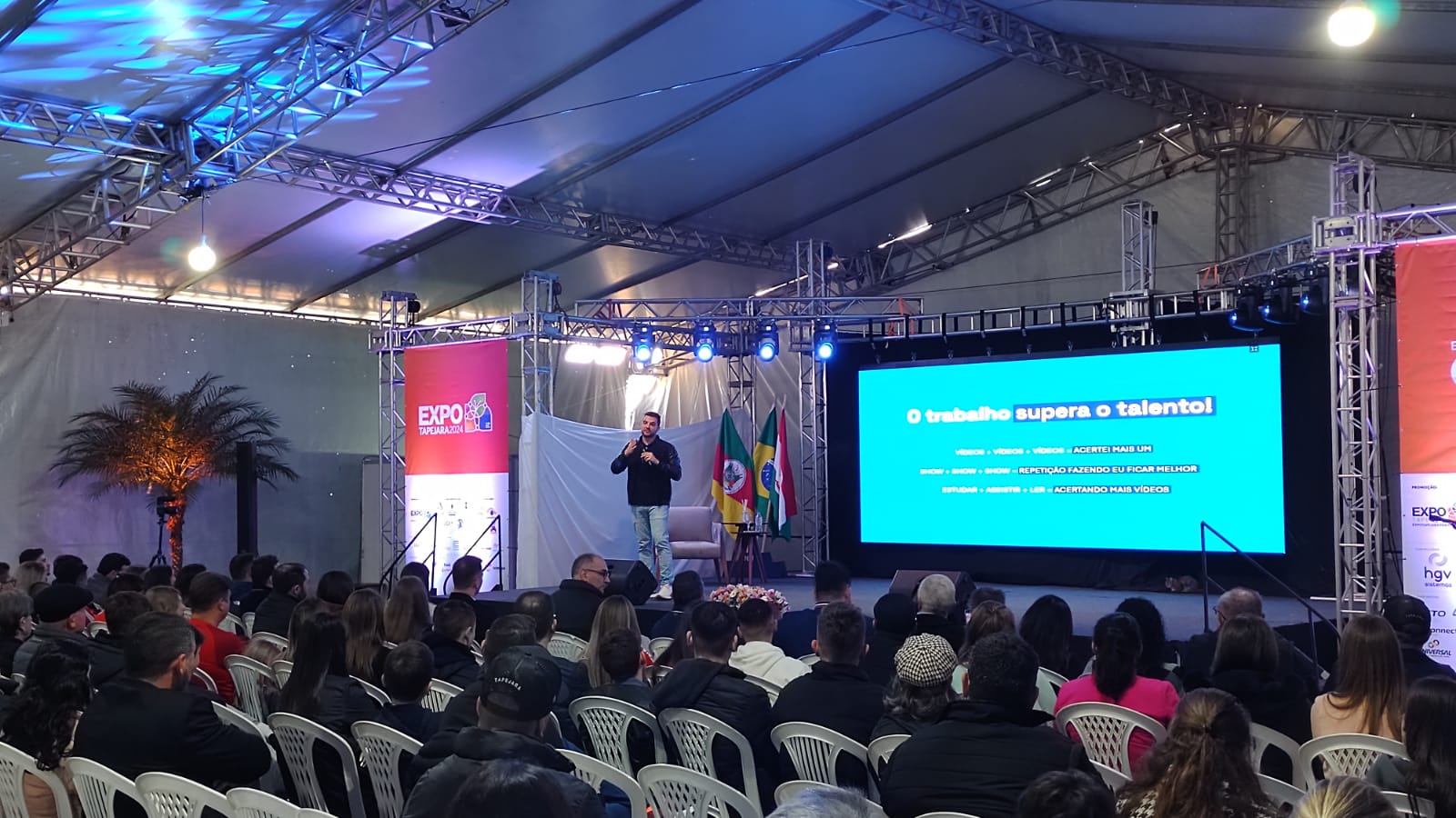 A 12ª Expo Tapejara recebeu palestrantes de renome durante o 7º Espaço Gestão Neorgan. Neste sábado, 10/08, culminando às atividades do evento, estiveram trazendo suas experiencias e vivências, Eduardo Cristh, que criou o personagem Badin e o ex-jogador e ídolo da torcida do Sport Club Internacional, Andrés D’Alessandro.