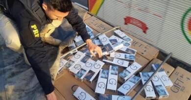 A equipe do 3° BABM de Erechim deslocou até o município de Ibiaçá e realizou vistoria em madeireiras. Em um dos locais fiscalizados, os PMs constataram depósito de 3,39 m³ de madeira serrada, da espécie Pinheiro Brasileiro (Araucária) e 0,76 m³ de madeira serrada de Canela, as tábuas estavam sem a cobertura do DOF (Documento de Origem Florestal).