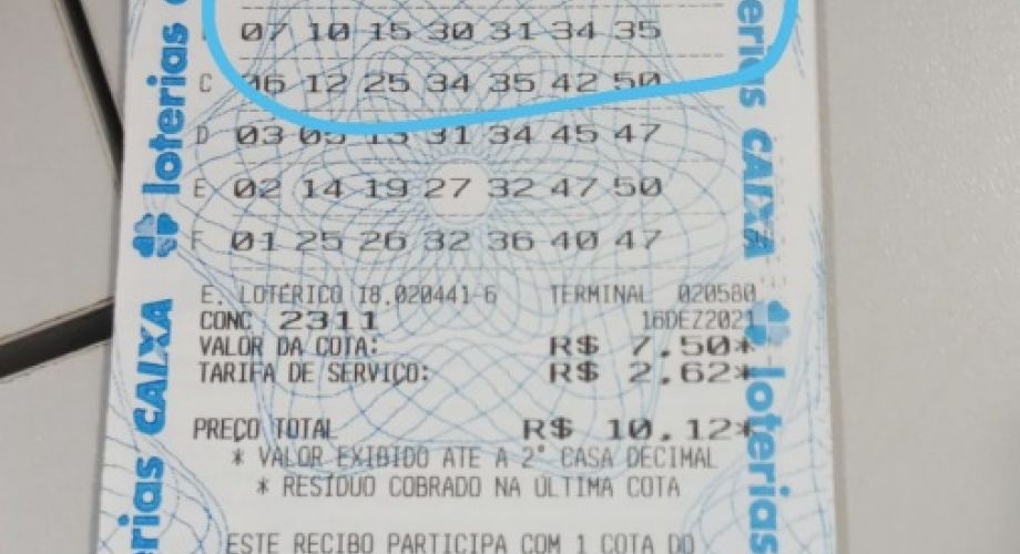 Um bolão da Dupla Sena, com 14 cotas, realizado pela Lotérica Lagoense, acertou as 6 dezenas no sorteio deste dia 16/12.