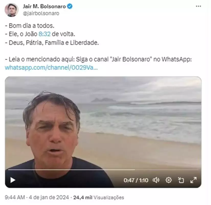 Ao promover o texto em vídeo gravado na Barra da Tijuca, no Rio de Janeiro, onde tem casa, Bolsonaro pede aos apoiadores que repassem o material. “Agradecemos às pessoas maravilhosas que se interessam por isso, pela verdade, se interessam por buscar solução para o nosso país e, do nada, as coisas vão acontecendo”, concluiu ele.