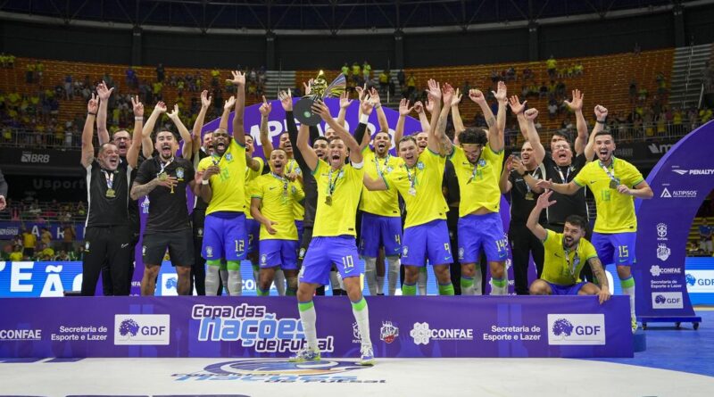 A seleção brasileira conquistou, no último domingo (21) no Ginásio Nilson Nelson, em Brasília, a Copa das Nações de Futsal. O título foi garantido após uma vitória pelo placar de 2 a 1 sobre a Polônia.