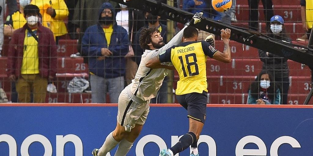Já nos acréscimos, o árbitro voltou a expulsar Alisson. Ele assinalou pênalti após ter visto uma entrada de soco no jogador do Equador. Ao ser alertado pelo VAR, a imagem mostrou que, na verdade, mais uma vez o goleiro brasileiro acertou a bola. Sob fortes protestos dos equatorianos, anulou a infração e o cartão, e a partida terminou mesmo empatada em 1 a 1 em Quito.
