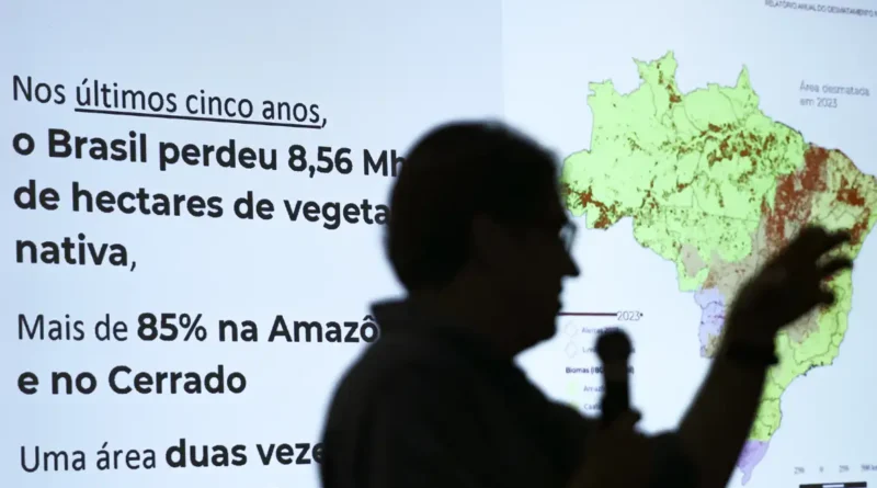 Brasília – O coordenador-geral do Mapbiomas, Tasso Azevedo, durante o lançamento do Relatório Anual do Desmatamento no Brasil 2023. O relatório traz um raio-x do desmatamento no Brasil em diferentes recortes territoriais e fundiários. Foto: Marcelo Camargo/Agência Brasil – Marcelo Camargo/Agência Brasil