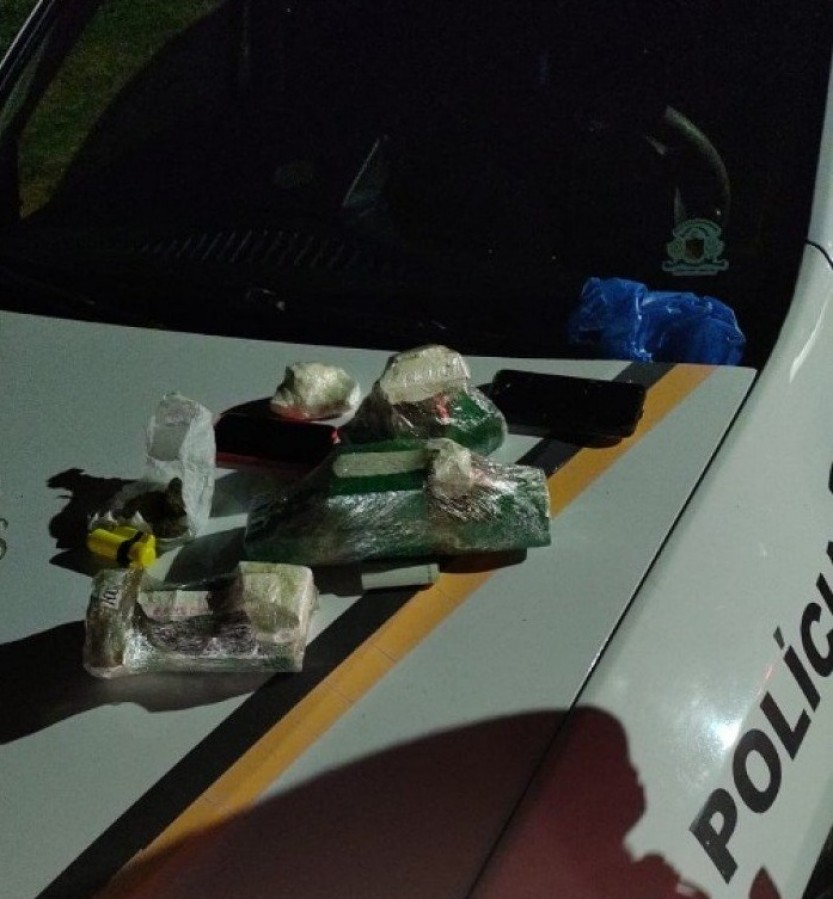 No total, foi encontrada a quantia de 2,038kg de maconha, além de 0,226g de cocaína e 0,226 de crack. Em dinheiro, o trio levava R$ 592,20.