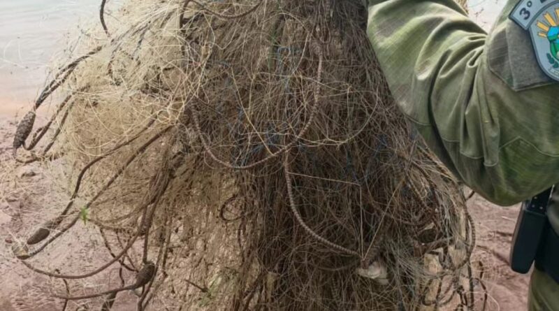 Já no domingo (18), o patrulhamento ocorreu na Barragem do Rio Jacuí, no município de Tio Hugo. Durante a ação, uma embarcação foi localizada às margens do lago. Na vistoria, os policiais encontraram 150 metros de redes de pesca fixadas no barco. Em terra, foi localizado um balde plástico contendo peixes já mortos. Nenhum responsável pelos materiais foi identificado no local.