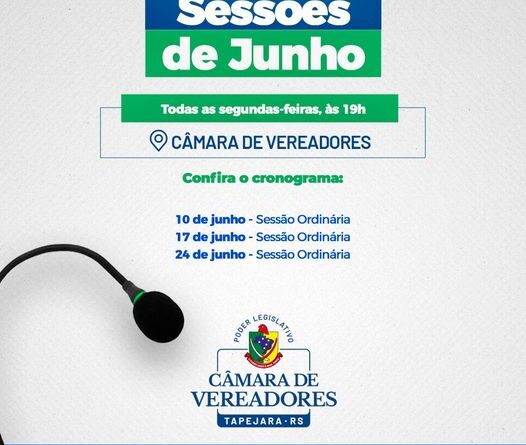 Câmara de Vereadores de Tapejara convida a Comunidade para acompanhar as Sessões de junho
