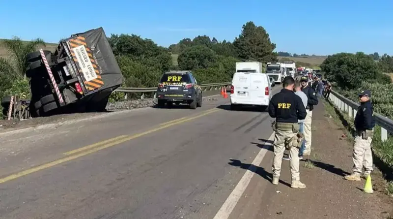 A colisão entre duas carretas no quilômetro 312 da rodovia BR-285 próximo à cidade gaúcha de Passo Fundo (Região Norte), por volta das 5h dessa sexta-feira (19), causou a morte de um caminhoneiro de 45 anos. De acordo com informações da Polícia Rodoviária Federal (PRF), o outro motorista, de 34, não se feriu.