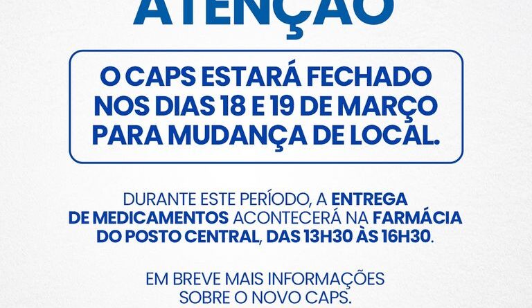 Prefeitura de Tapejara informa que o CAPS está mudando de endereço para aprimorar nosso atendimento.