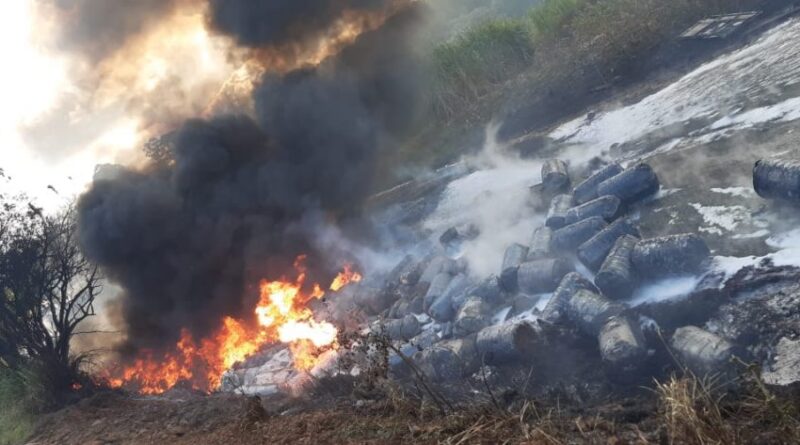 Carreta com carga inflamável pega fogo na ERS-472 entrada de Palmitinho