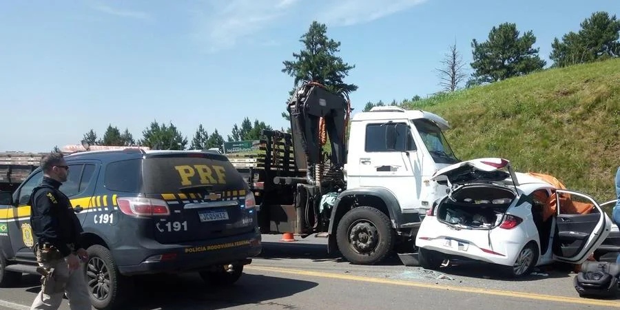 De acordo com a Polícia Rodoviária Federal, por volta das 8h, um Hyundai HB20, emplacado em Foz do Iguaçu, foi atingido na lateral por um caminhão VW 17.210.