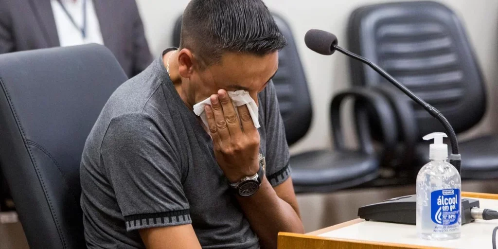 Souza disse ter sido enganado por Alexandra. “Só ela vai poder falar a verdade. Acho que está mais do que na hora dela falar a verdade. Por todo sofrimento que ela está causando para a família dela e para o Rafa descansar também”, afirmou. O homem se emocionou ao lembrar que foi investigado como suspeito da morte de Rafael. Durante o depoimento, a juíza Marilene Campagna negou pedido da defesa de diligência para intimação de uma nova testemunha.