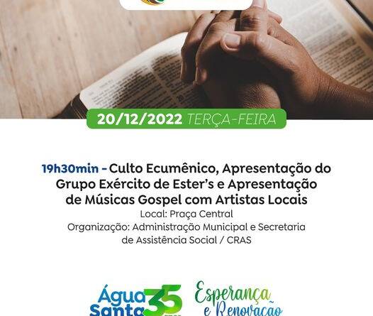 Read MoreHoje, 20 de dezembro, às 19h30min acontece o Culto Ecumênico e as apresentações em alusão aos 35 anos de emancipação
