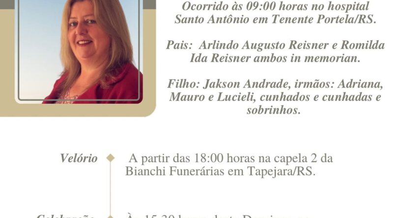 Read MoreA Bianchi Funerárias, juntamente com a família Andrade, comunica com pesar, o falecimento de Roseli Silvane Reisnier Andrade, oorrido às