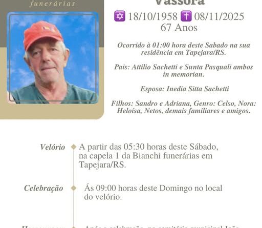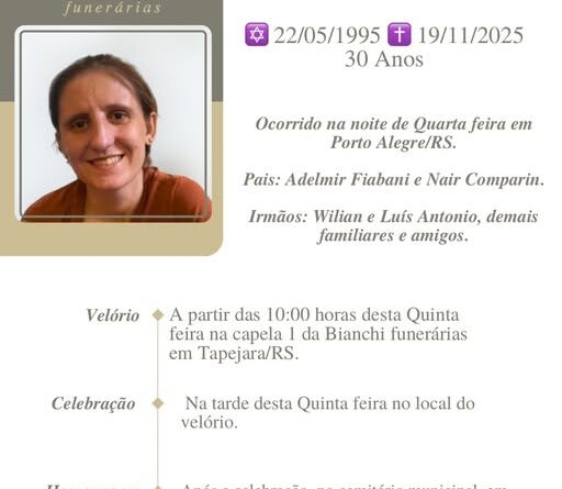 Read MoreA Bianchi Funerárias, juntamente com a família Fiabani, comunica com pesar, o falecimento de Tainá Fiabani, ocorrido na noite 19/11/2025 em