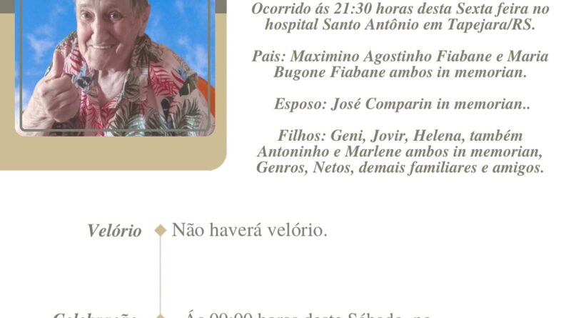 Obituário: Tainá Fiabani