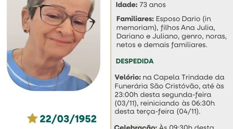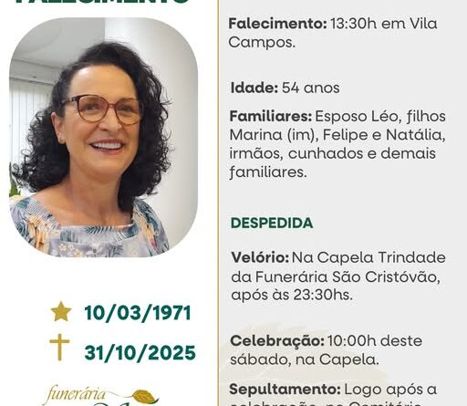 Read MoreA Bianchi Funerárias, juntamente com a família Lemos, comunica com pesar, o falecimento de Zaira Lemos, ocorrido dia 03/11/2025 em sua