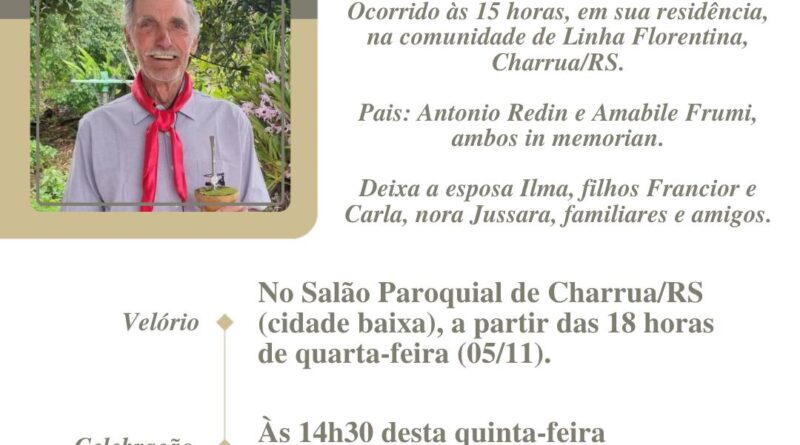 A Funerária São Cristóvão, juntamente com a família Rusch, comunica com pesar, o falecimento de Dolívio Rusch, ocorrido às 05h30
