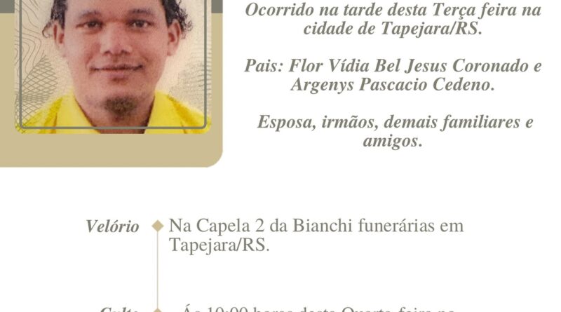 Read MoreA Bianchi Funerárias, juntamente com a família Coronado,, comunica com pesar, o falecimento de Jahier Lael Cedeno Coronado, ocorrido dia 04/11/2025