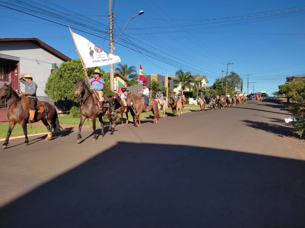 Representando o prefeito Evanir Wolff, o secretário de Esporte, Cultura, Lazer e Turismo, Cláudio Girardi, agradeceu os cavalarianos por ter escolhido o município de Tapejara como ponto de saída da comitiva, que aconteceu, na manhã desta sexta-feira, dia 25. “Os cavaleiros irão percorre mais de 70km, a cavalo, até o município onde acontecerá a 32ª Romaria em homenagem a Nossa da Saúde. A previsão de chegada é para este sábado, dia 26, no final da tarde”, informou.