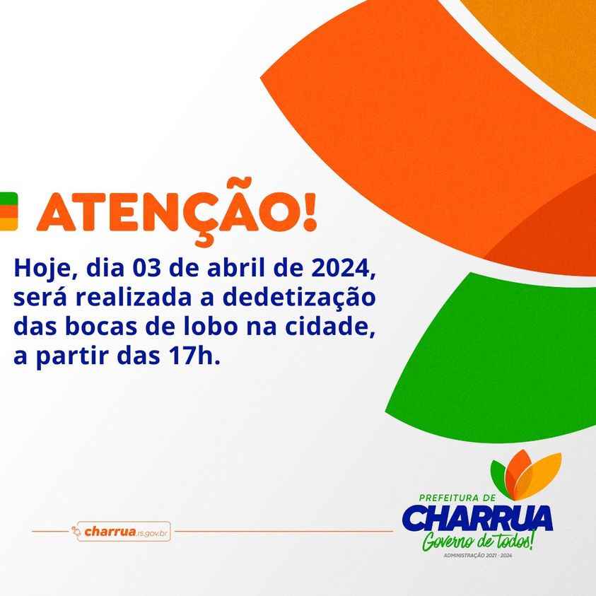 Com o objetivo de evitar a proliferação de insetos, principalmente de baratas, mosquitos AEDES e roedores, a Administração Municipal de Charrua, através da Secretaria Municipal de Saúde, realizará a dedetização das bocas de lobo na cidade, hoje dia 03 de abril de 2024, a partir das 17h, sem previsão de um horário para término.