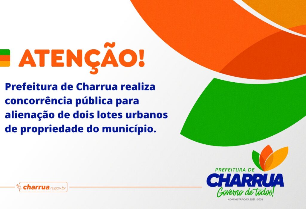 Prefeitura de Charrua realiza concorrência pública para alienação de dois lotes urbanos de propriedade do município, um localizado na Cidade Alta na Rua Otacílio Franklin da Silva – Preço mínimo de R$ 63.772,00 (sessenta e três mil e setecentos e setenta e dois reais); e o outro localizado na Cidade Baixa na Rua Ernestina Domingues – Preço mínimo de R$ 59.400,00 (cinquenta e nove mil e quatrocentos reais); conforme Edital de Concorrência nº 01/2023.