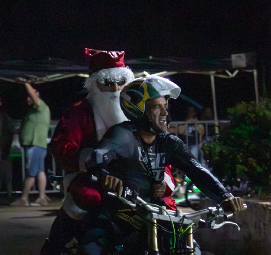 Com olhos atentos e brilhando, adultos e crianças participaram da contagem regressiva para o acendimento das luzes da praça municipal. E como não poderia faltar muita alegria e diversão, quem veio trazer muita magia e emoção nessa noite foi “aventureiro” PAPAI NOEL que chegou com muita coragem na carona dos pilotos do Cachorrão Moto show, que de fato foi um show espetacular. Na sequência a festa continuou com o show do cantor Luan Solo e muitas fotos com o Noel na sua tão sonhada casa de Natal.