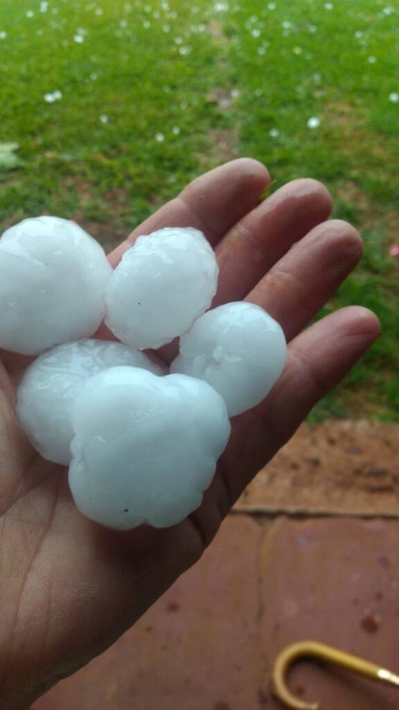 Nas imagens que circulam por redes sociais além do tamanho de algumas pedras, é possível observar um gramado coberto pelo granizo.