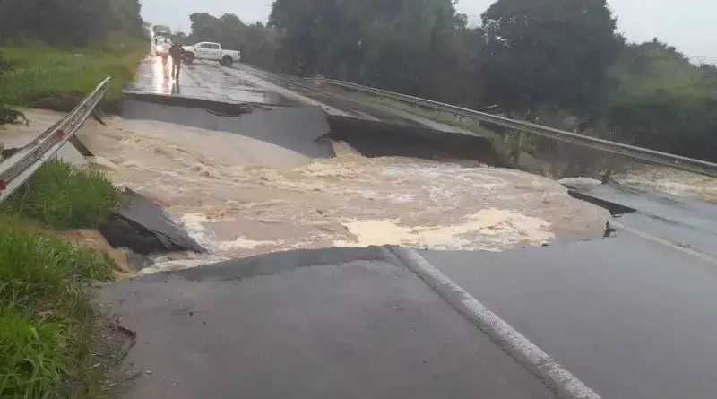 No km 137, em Candelária, ponte cedeu.